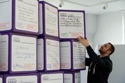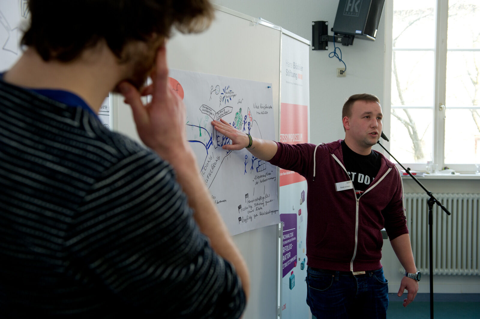 Nach drei Tagen des Austausches und der gemeinsamen Arbeit sind auch die Fragen der Teilnehmer konkreter und vielschichtiger geworden. Und schließlich werden die „Sitzmöbel“ der Veranstaltung zu inhaltlichen Botschaftern: Auf zahlreichen Würfeln festgehalten, werden die Fragen im Mittelpunkt einer Kampagne der Hans-Böckler-Stiftung stehen. Im 40. Jubiläumsjahr des Mitbestimmungsgesetzes will die HBS dem Thema Mitbestimmung neue Schubkraft verleihen und die „Offensive Mitbestimmung“ des DGB verstärken.